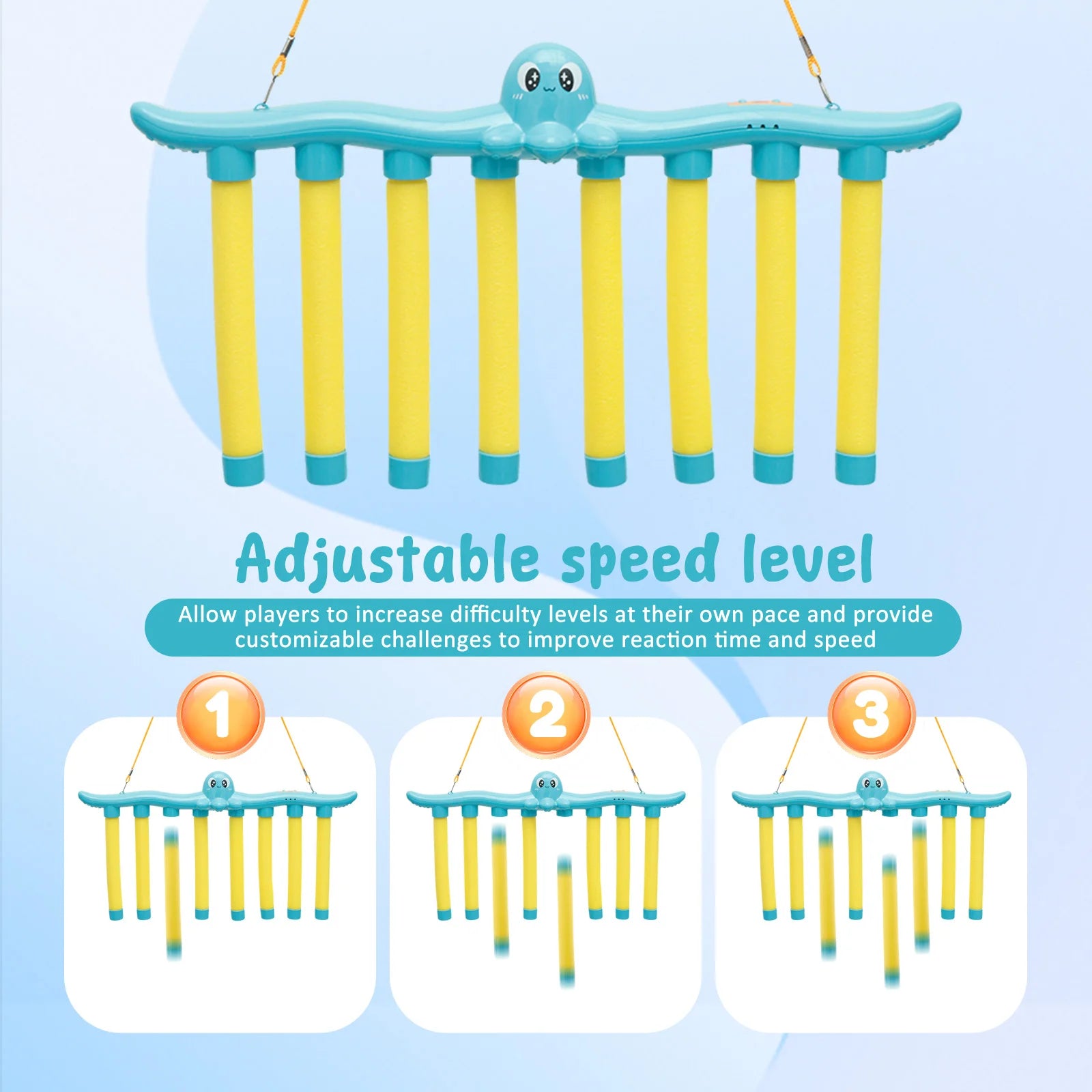 Deze Catching Sticks Game laat stokken onverwacht vallen—vangen maar! Het zachte, kindvriendelijke materiaal is veilig voor kleine handjes. De snelheid kun je eenvoudig aanpassen voor elk niveau. Onderaan zie je de varianten in blauw en roze, inclusief koord en USB-kabel.