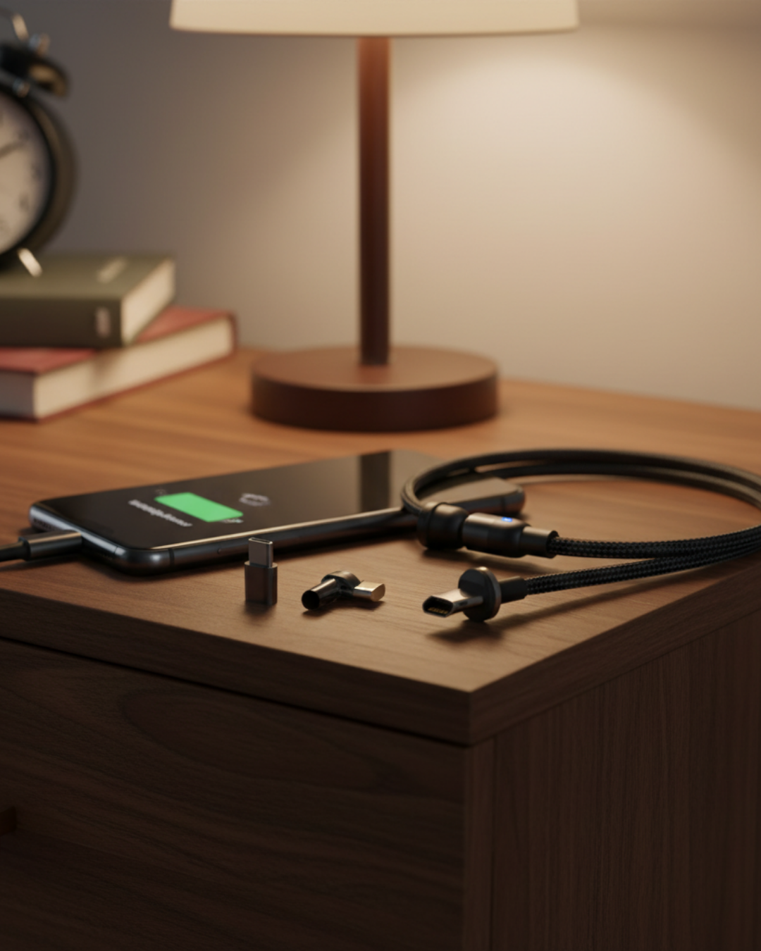 De FlexiMag™ combineert een L-vorm en rechte aansluiting in één handig ontwerp, zodat je je telefoon comfortabel kunt opladen in elke positie.
