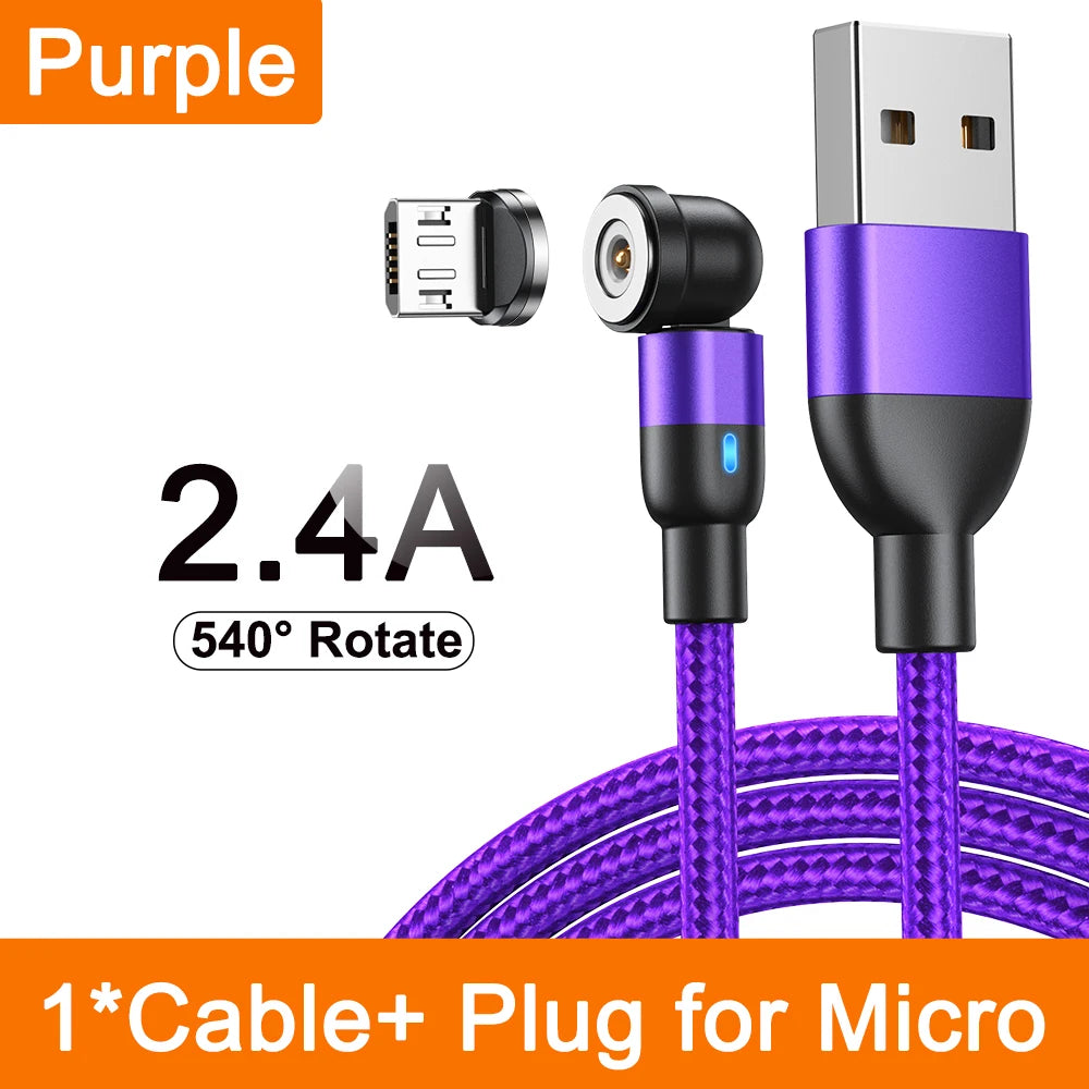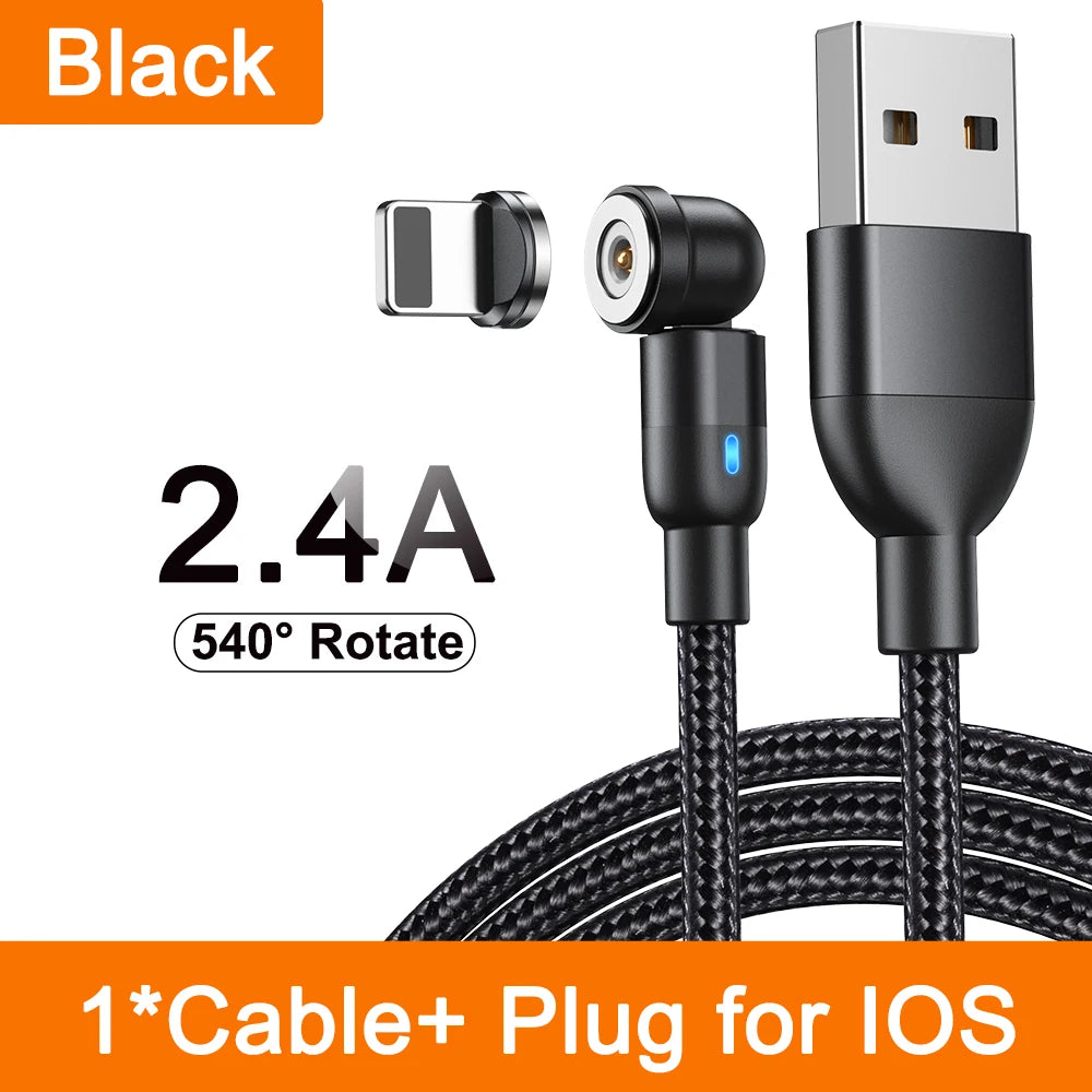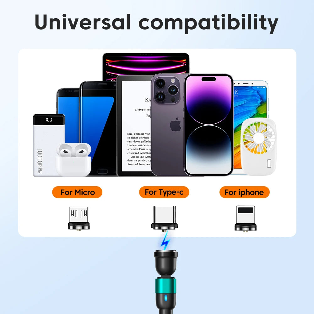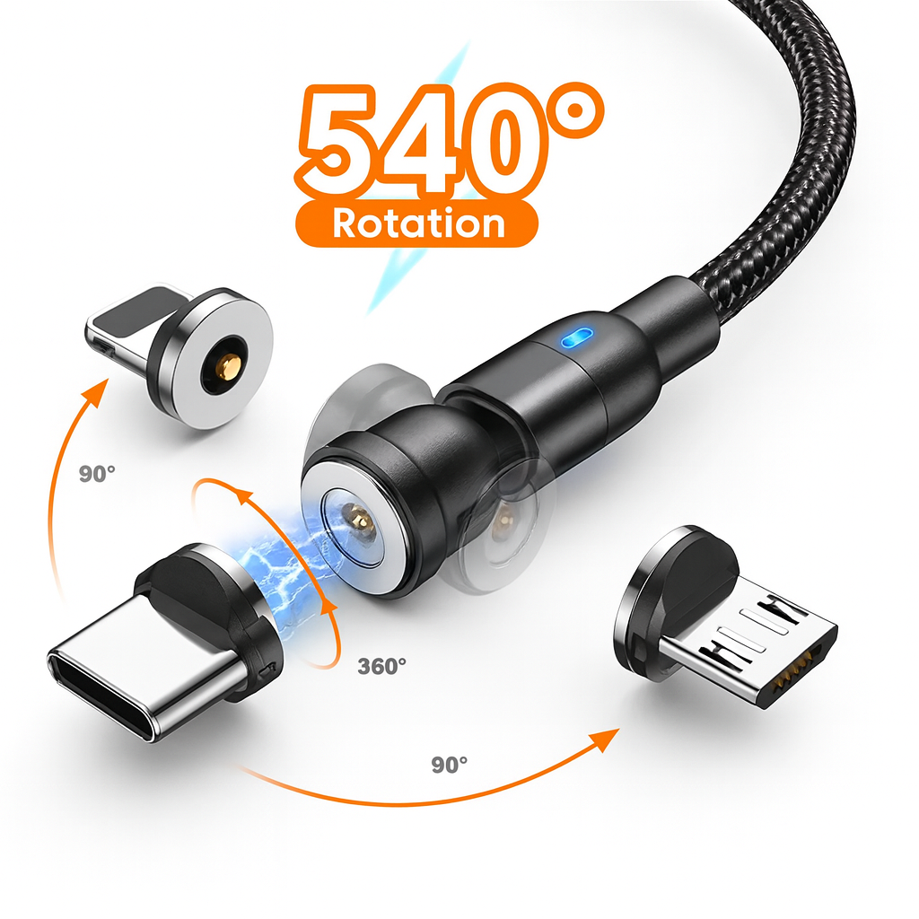 540° Draaibare Magnetische Oplaadkabel – Micro USB, Type-C en iPhone